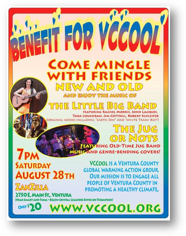 So enjoy Frei Brothers Reserve Wine while mingling with friends new and old, and getting down with the music of: The Jug or Nots (jug band), the Rachel Morris Little Big Band ( original works including “Earth Day” and “White Trash Boy”), and Mule Skynner (classic rock). The VCCool Benefit concert is held in yoga studio of Zan Ferris who graciously donated her gorgeous space for this event. This hidden oasis and the music too, can be found below Smart and Final off Main. Directions