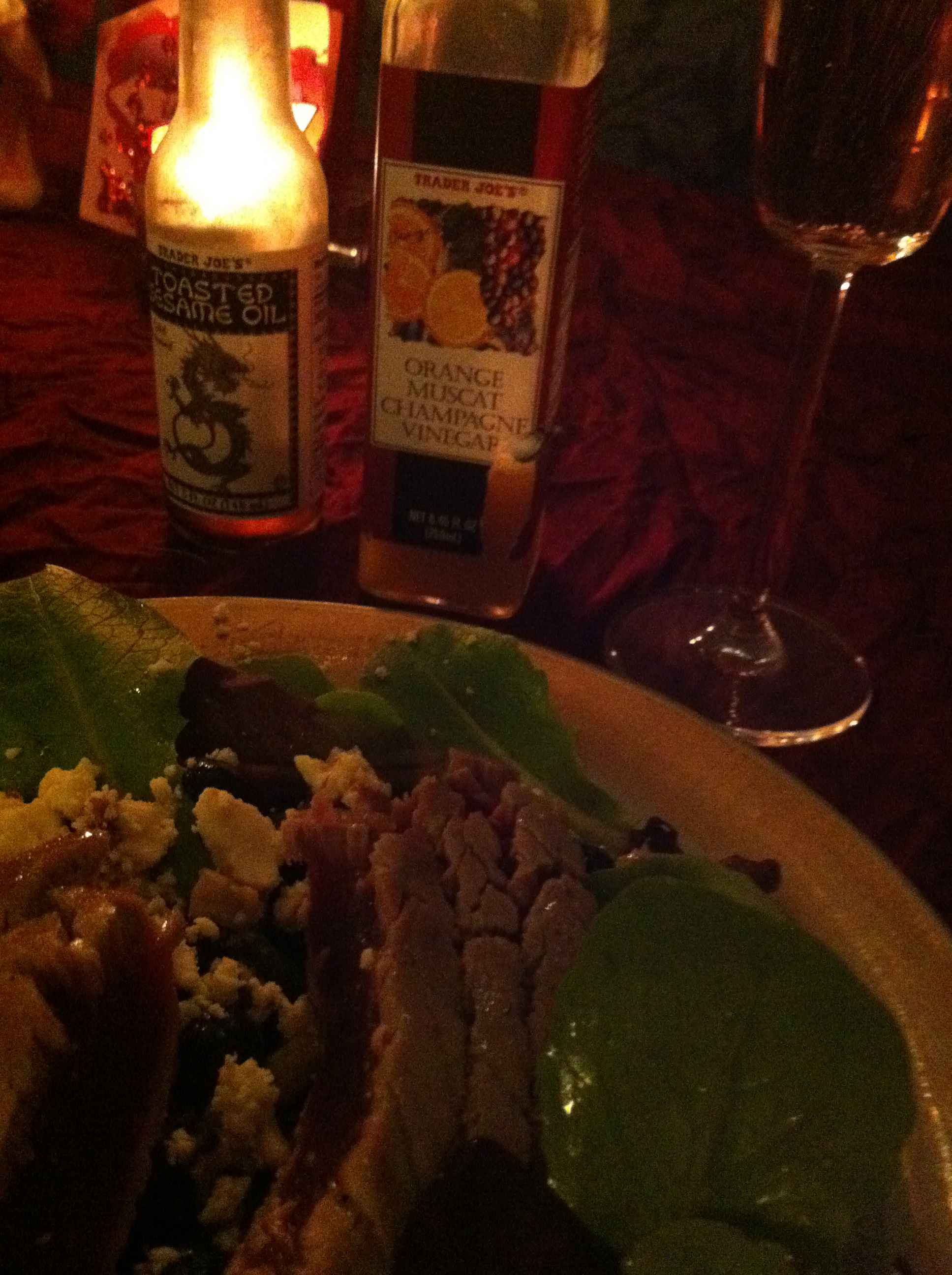 We’ve served it different ways, but the best, and not to mention I think the most romantic, is seared for 30 seconds or so on a super hot skillet, then sliced and placed on a bed of fresh field greens. I add walnuts and blueberries and a cheese like feta or cotswald; since I discovered white stilton with cranberries, I’m convinced it’s perfect.