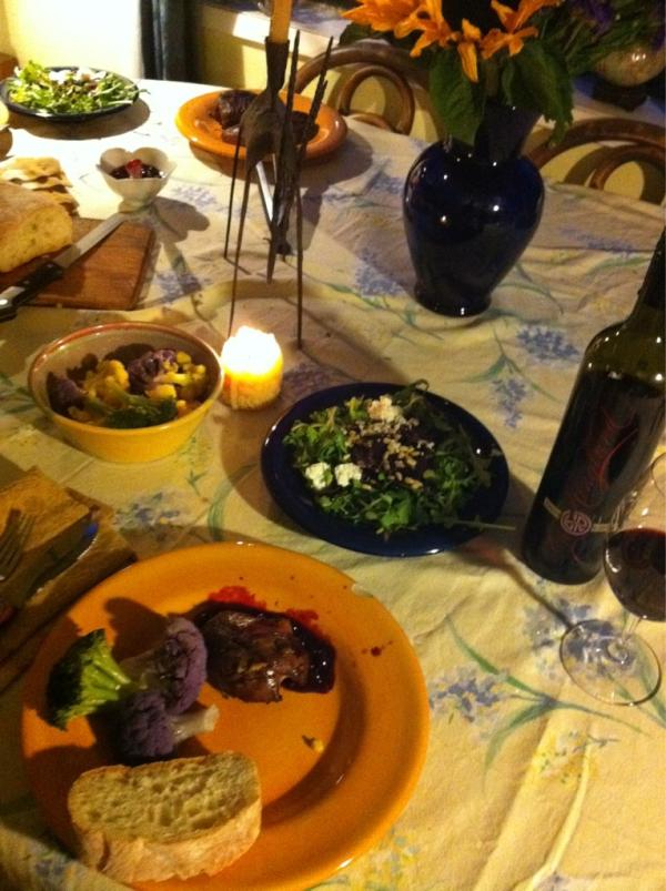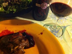 Several years later, what I said then holds true: the color is incredibly dark purple with a ring of violet, it continues to remind me of dark chocolate cocoa and dried blueberries, and it’s huge and rich and balanced. For our anniversary, my husband scored wild duck breasts from a friend and my husband marinated them