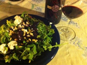 We also had an arugula salad with portabellas cooked in port, sheep’s feta, and drizzled it with some blueberry sauce which was also brilliant.