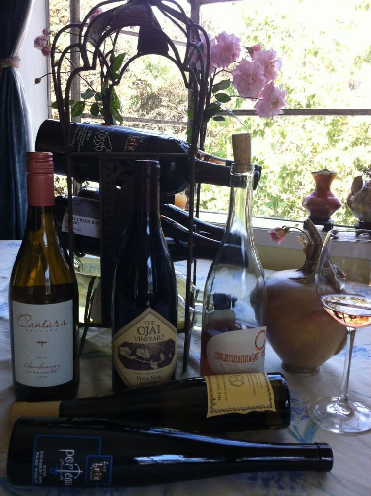 Old Creek Ranch is a working farm (they used to grow wine grapes but problems with bugs and disease). Michael Meagher makes the wine for Old Creek and for his label, Vino V. Both wineries donated wine to the recent Pierpont School silent auction and I placed winning bids allowing me to take home two bottles of albarino and two bottles of a Rhone blend from Old Creek plus two bottles of the newly released Vino V 2012 Rose. (Thanks for the donations!)