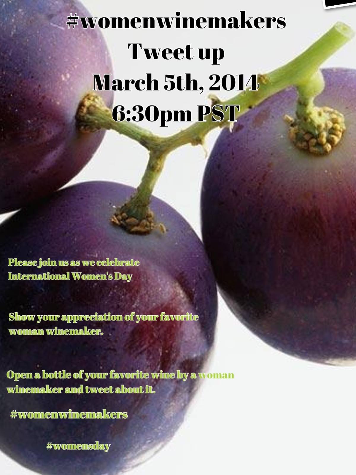 That’s the idea of the tweet-up on the first Wednesday evening of March–to taste and tweet about wines made by women March 5, 2014. We’re going to get started at 5pm Pacific Standard Time.