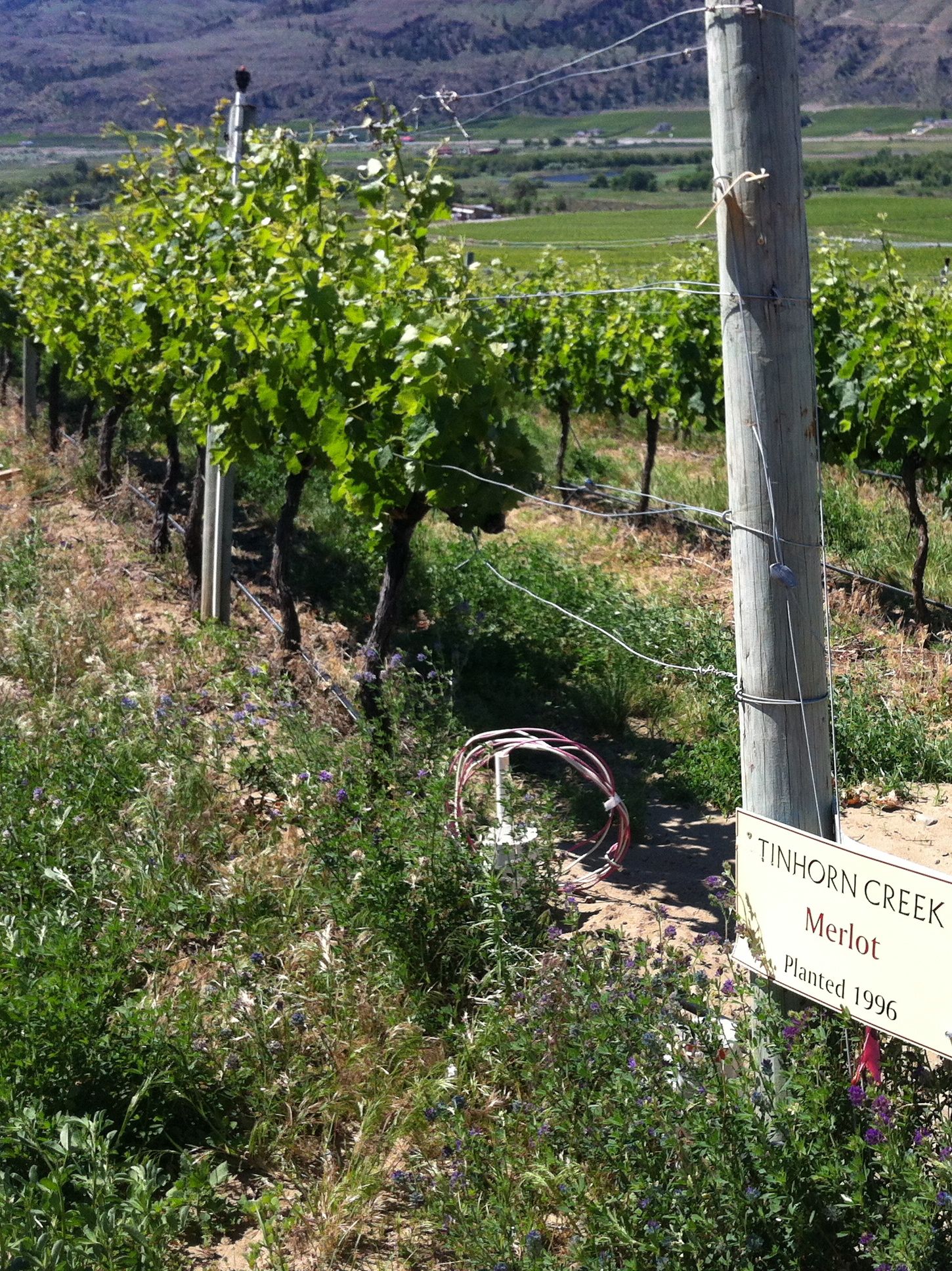 TinhornCreekmerlotvinesIn contrast to the tiny and youthful Wine Girl Wines, Tinhorn Creek is celebrating its 20th anniversary as one of the first and largest estate grown wineries in Canada (the website says 150 acres of vines!). I have a bottle of her spicy, racy, acidic, aromatic, and  minerally Gewurztraminer and her luscious, succulent Merlot which I could open for the occasion.
