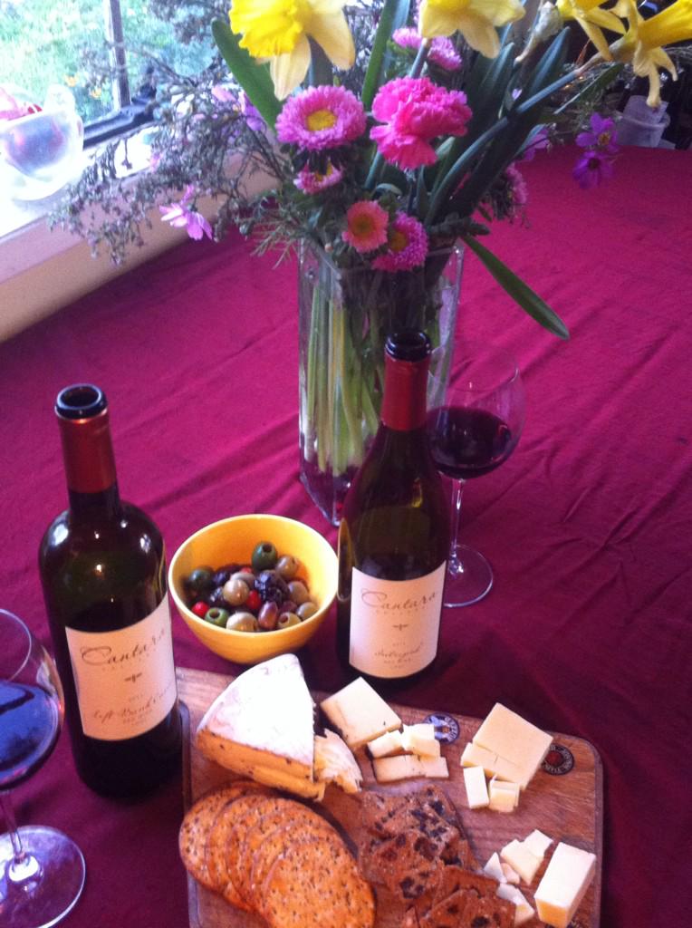 To get us in the mood for Valentine n Wine, Que Syrah Sue stopped by with two recent releases –both red blends from 2011 from Cantara Cellars that we found to be quite pleasurable with light appetizers (perfect for a romantic picnic) but which would really shine with a nice meal. Both of these wines benefited from being open a bit before drinking (Sue had opened them at the tasting room where she works on Sunday) and in fact they continued to develop over several days after we tasted them the following Tuesday indicating that these may be some nice long lived wines worth cellaring until 2020 or more!