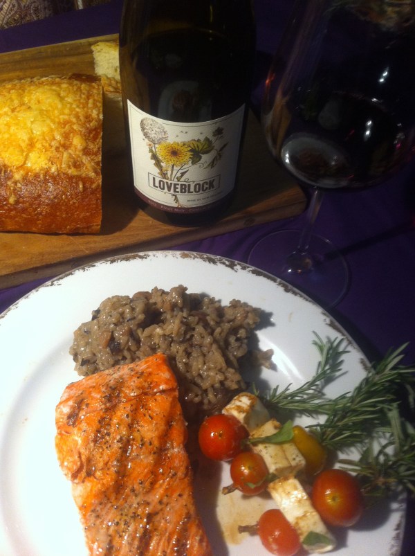 We really wanted to like this wine because we loved the bottle, the label, the nose, the color, but it wasn’t as engaging on its own as we hoped however when paired with food it came ALIVE. This wine really needs a meal that it can sing with. This is not your cocktail happy hour pinot. It went really well with the provolone wrapped with procuitto and we could imagine how wonderful it would be with the meat pies are so popular in New Zealand. Surprisingly, it did not go as well with the olive tapenade and the bread because it does not lend itself to the saltiness. It wants the creaminess of a brie or the earthy loveliness of a pate to go with a gamey kind of pinot noir. The creamy mushroom risotto was just right.
