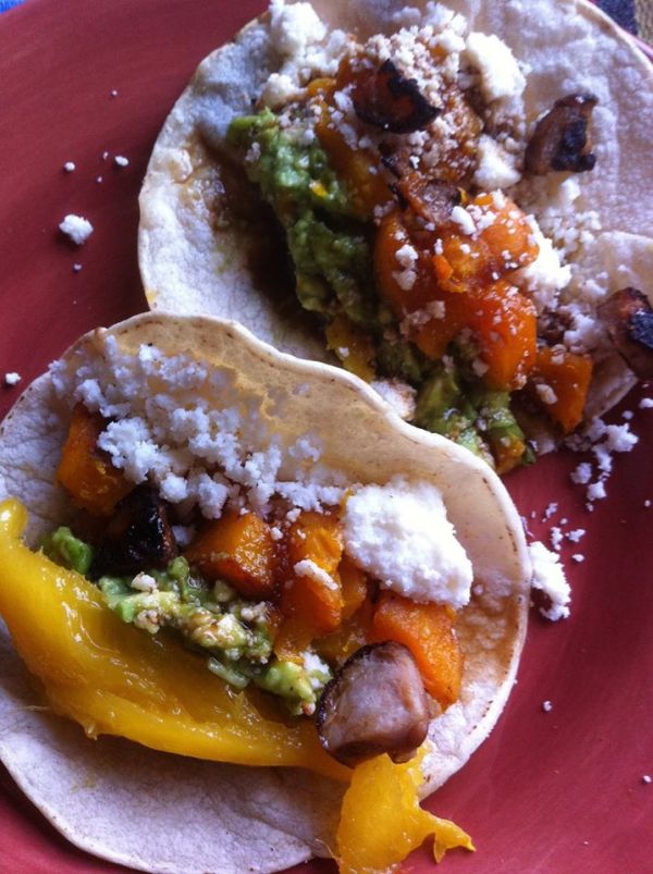 These roasted squash tacos were not as heavy or fatty as meat tacos but were so flavorful and wonderful, especially with blackberry balsamic drizzled over the top of the tacos. This makes a nice light spring entree that gets rid of any squash you may have that’s been lying around all winter or pick some up at the store.