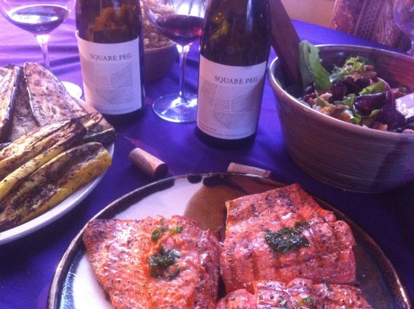 On Grill: Salmon, Squash, Stone Fruit; In Glass: Square Peg Pinot Noir for #WinePW