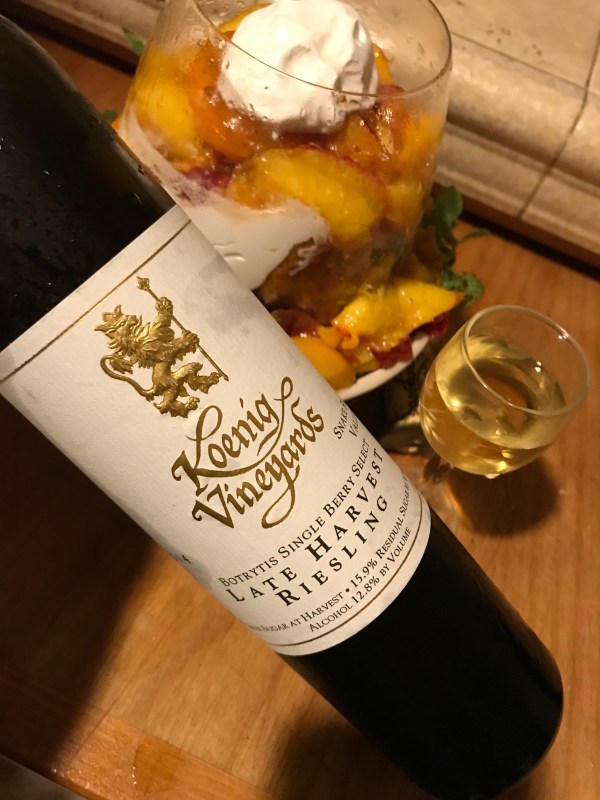 In our on-going series on wine from Idaho, today, the final day of June’s Idaho Wine Month,  we’re featuring two wines from Koenig which Sue visited last summer. While Sue is typically a red wine gal, this is the second Viognier she bought on her trip there (see our notes about Williamson’s Viognier here). The 2014  Koenig late harvest riesling was sent as part of a case of twelve wines from 12 wineries.