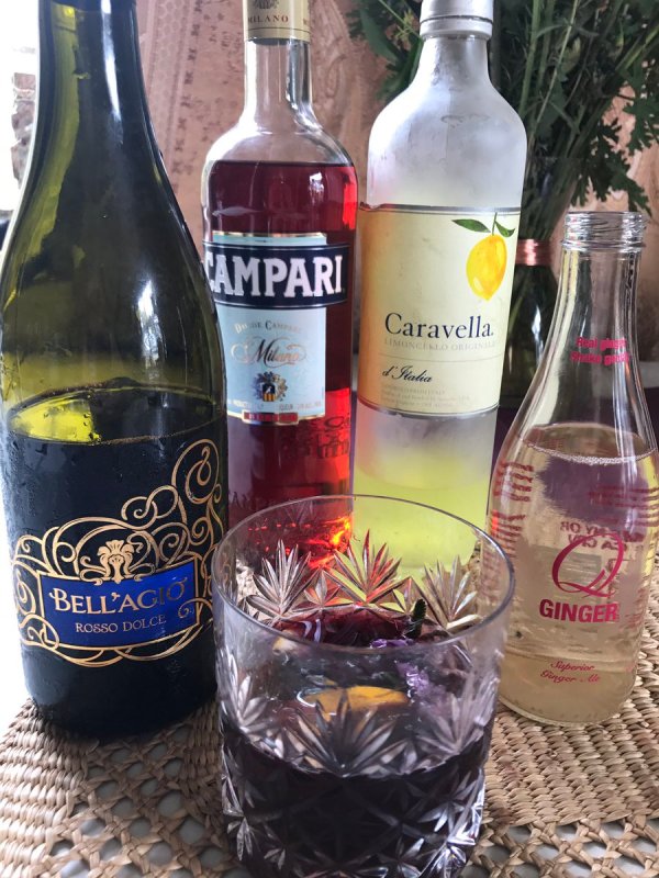 For a different twist we used fresh lavender, ginger root, and lemon and muddled it in a cocktail mixer 1/2 oz Campari, 1/2 oz Limoncello, with ice and chill. Strain and add 1 oz Lambrusco and 1/oz ginger ale. Garnish with lavender bloom and lemon slice