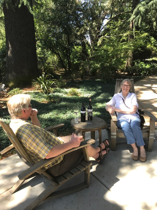 On a hot June Day, wine club members enjoy Old Vine Zin in Harney Lane’s cool and peaceful gardens.