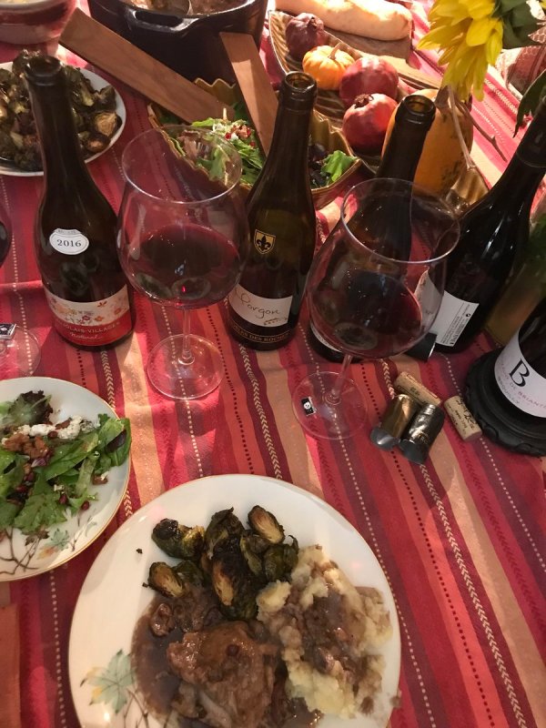 Coq au Vin tastes much better than it looks period!! Something about red chicken is off putting but the taste? YUM…and I’m sure it paired well with the Beaujolais.