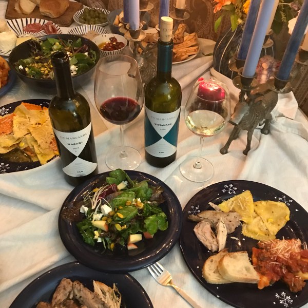 In October and November, the Italian Food Wine Travel group explored Chianti, a region of Tuscany that is well known for its wine; we were supposed to get samples but they just arrived a few days ago! At one point, I reached out to a contact in the wine industry for samples of wine that we could write about. (here’s what we wrote about in October and here’s what we wrote about in November). Instead of Chianti, he offered us two wines from another region in Tuscany that he thought would interest us, and they instantly caught our attention; a red wine blend and a white wine blend both from Ca’Marcando from Gaja.  While they wouldn’t fit into our Chianti publication plans, I knew we wanted to feature them for December’s prompt: Wines for the Christmas Feasts!
