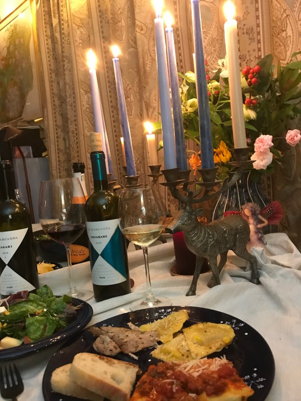 This year, however, our demanding schedules had us wondering whether we could participate at all! At the last minute, the siren call of these wines got us to rally and pull together some research into Christmas feast traditions in Tuscany — and to produce a meal to match the inspiring wines from Gaja’s Ca’ Marcanda.