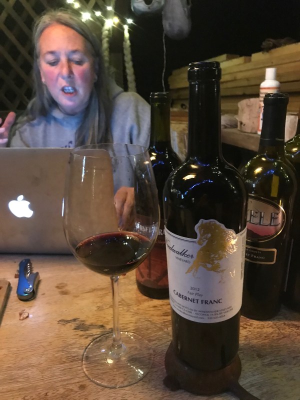 Following the International Food Bloggers Conference, I stayed at Lucinda’s Country Inn in Fariplay and walked to Windwalker where I tasted through newer and vintage wines. When I tasted this one, I knew Sue would love it and it would be fun for Cabernet Franc Day, so I bought it with an industry discount. I’m so glad Sue appreciated it!
