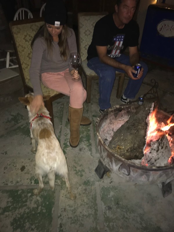 As the sun set we drove up to Ojai from Ventura and enjoyed the holiday lights coming on in the neighborhoods and hillsides. Sue had lights up at her house as well as a beautifully decorated manzanita tree that had perished but lives on in this capacity. “A Bluegrass Christmas” played on their music system to add to the festive scene. Outside, coals grilled sausages and were ready for the tritip and the fire pit was roaring cheerfully with three of John’s siblings and their partners and children about.