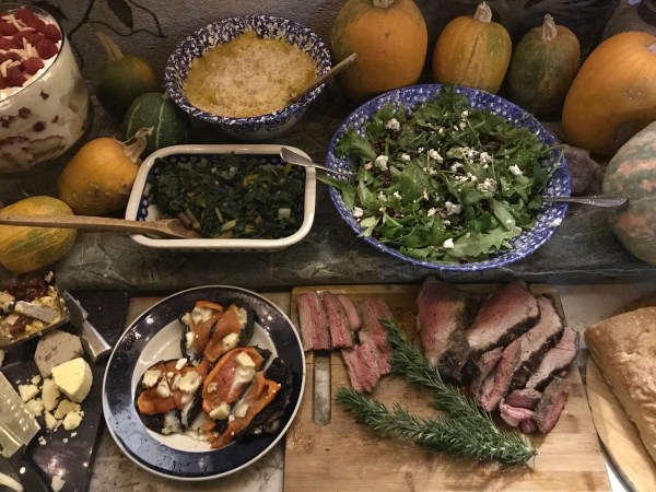 Large squash from Sue’s garden roasted then mashed with butter and sprinkled with parmesan - Greens: