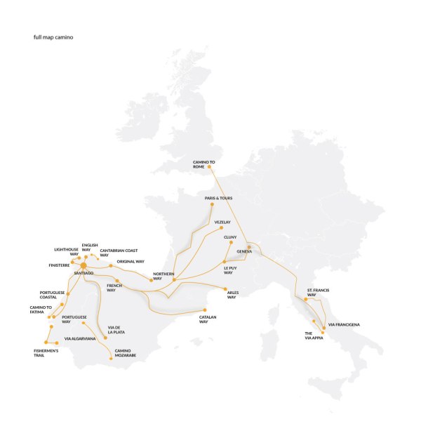 For pilgrims, the Camino starts the moment you leave the house: that’s when you begin on “The Way.” Some say “The Way” begins the moment you commit to it. There are several main routes as you can see from the map below, but the most popular route starts in France near the Pyrenees and the Spanish border in Navarra. Over 300,000 pilgrims traveled the Camino in 2017.