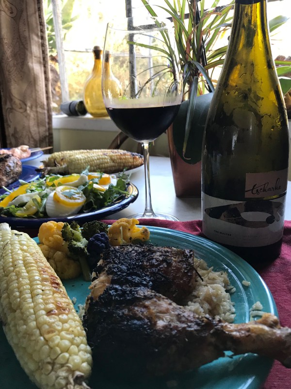 Pairing: Loved the spicy salami on the cheese plate! Great with Spring Chamay, it really handled the washed rind well. It also was happy with a Tomme de Savoie, but wasn’t that great with Gorgonzola. At the end of the evening it even went well with a zucchini cobbler bar that Sue prepared. That being said, it went well but did not sing, which in its own was surprising to Sue who did not think it would work at all with a dessert. Dark meat from chicken on the grill with lemon, rosemary, oregano worked well, but chicken or eggplant parmigiana might have been better. I could definitely see this wine with duck.