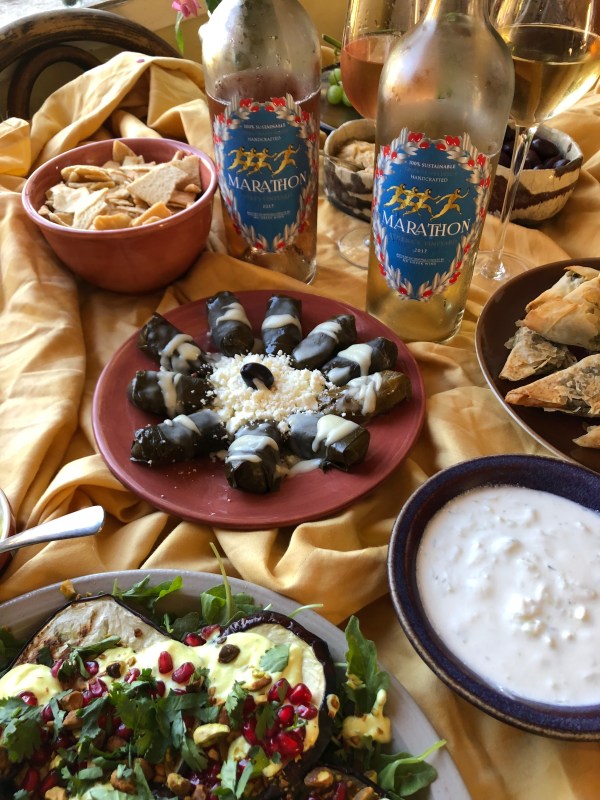 For this month’s Wine Pairing Weekend focus on Greek wines hosted by Cindy Rynning at Grape Experiences, we decided we’d check out something new: Marathon’s first two wines, “Athena’s Vineyard” and “Nike’s Vineyard,” paired with a few favorite Greek dishes.