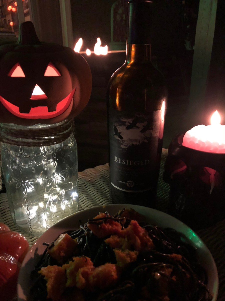Published October 24, 2018 at 3024 × 4032 in Hello Halloween! Hallo-Wines with Bloody Borscht, Pukey Pumpkin, Chunks of Brains on Intestines
