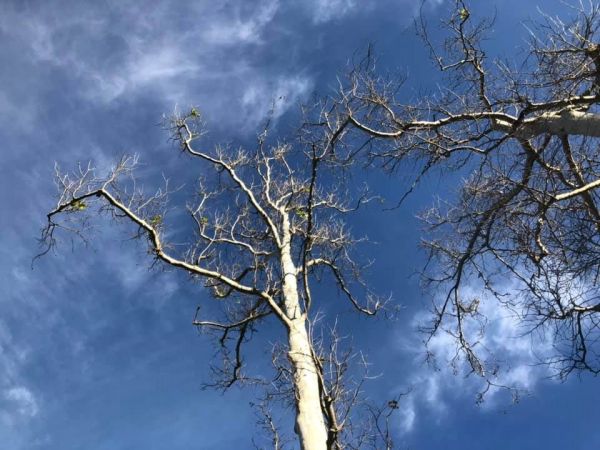 Cisco, my faithful Australian cattle dog sidekick, was along for the day, sitting up front, alert and making excited noises. Until the Thomas Fire, he lived on ranch lands like these, the smells and sights of the citrus trees a familiar backdrop to extended excursions.