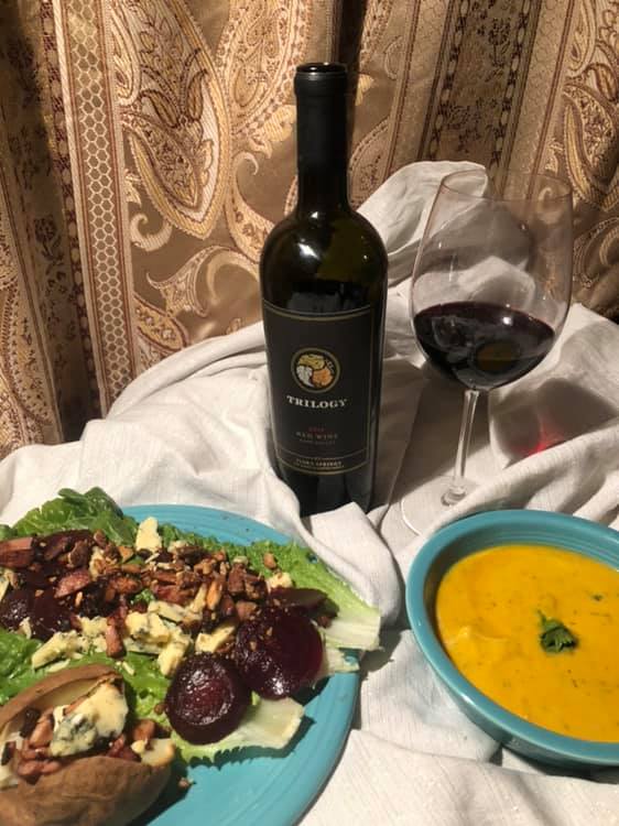 Pairing: The Trilogy loved the blue cheese and the garam masala on our roast nuts on the cheese plate and on the salad. Super great with the salami and paired well with the smoked ham. This would be a wonderful wine for any family occasion with ham or prime rib; for a smaller gathering, consider rack of lamb,  braised lamb shanks or osso bucco with creamy polenta.