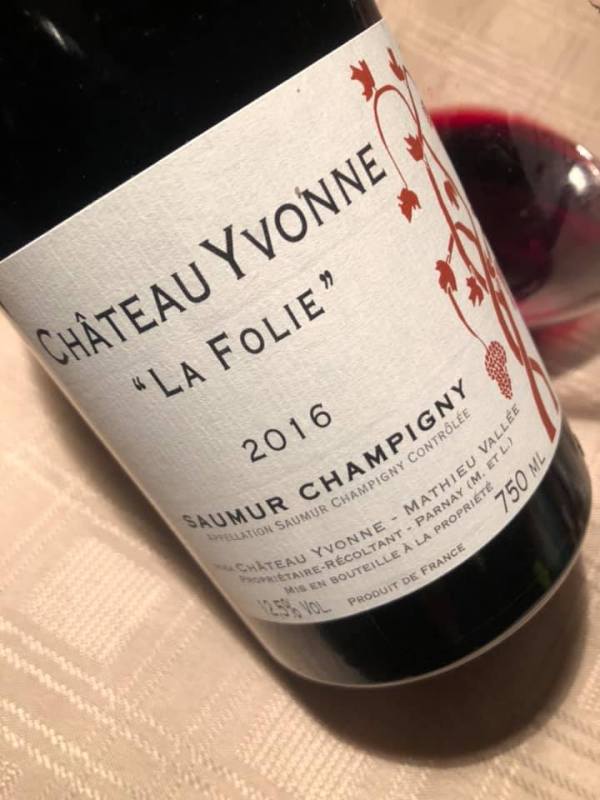 - 2016 Chateau Yvonne “La Folie” (biodynamic fruit from Loire)