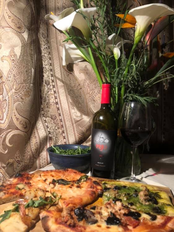 Pairing: Great with the margarita pizza, the asparagus, canadian bacon, fresh rosemary pizza was great, the wine was perfect when paired with the herbal rosemary; this pizza brought out a nice tartness and cut back on the richness of the wine. Loved the fresh herb and went with the pesto pizza as well. Once again, it loved the freshness of the herbs and the sausage, and the salt cured olives.