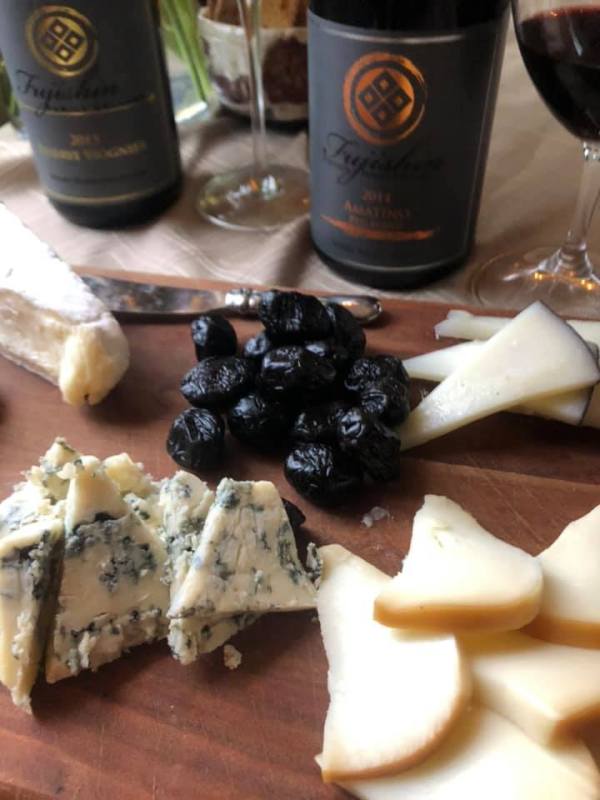 Pairing: So great with the salad as well — which is not surprising because tasting the wines inspired the direction of the salad. Salami and spicy cured meats are super satisfying with this wine so the combination of the salad and the Charcuterie plate worked well with both wines and was a lighter yet completely satisfying meal. I thought of Sue’s venison chili (which the last time she made came from a friend’s farm that lives right on the Oregon-Idaho border near the Idaho Snake River AVA. This wine can definitely take on rich gamey meat. We originally thought of having buffalo burgers, but just did not get around to making that happen. Salt cured olives brings out a bunch of cherry fruit in the wine. Sue immediately thought of making a pasta dish with olive oil, italian sausage, salt cured olives, and a sprinkle of red pepper flakes. Then came the blue cheese, I felt that there is a “Wow” moment, and then there is heaven. So if we had had our buffalo burgers with blue cheese we would have been over the moon. It made the aged gouda taste like bacon in all of the good ways. It brings out a rich fatty creaminess, and an earthy meatiness.