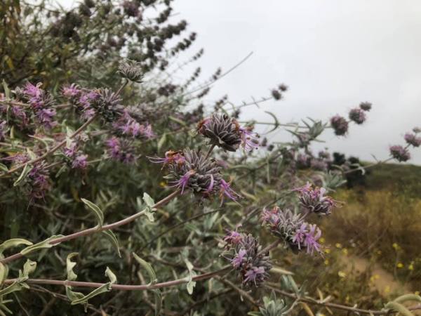 June Gloom and leucaphylla along the Arroyo Verde Park trail in Ventura; lots of this sage grows around the Clos des Amis vineyards.