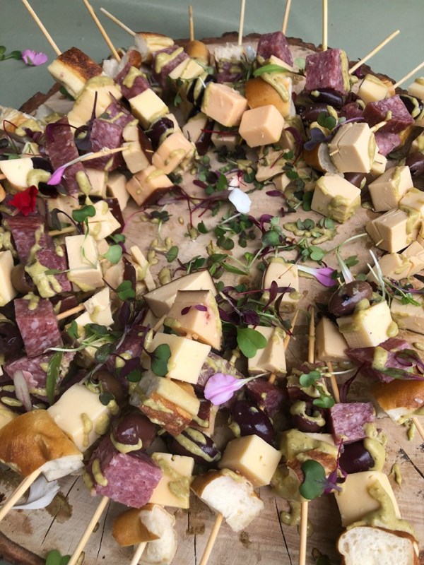 These slender skewers with meat and cheese garnished with edible flowers served at the Casa Pacifica fundraiser at CSUCI would make a lovely addition to any picnic or party and pair really well with wine!