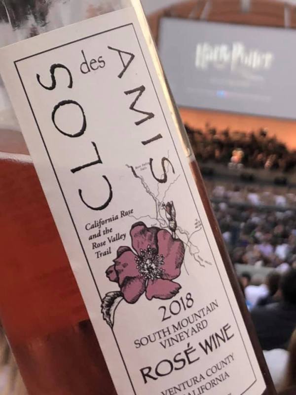 Some places, like the Hollywood Bowl, allow you to bring in alcohol for certain events but not others. We could  for last night’s LA Philharmonic’s showing of Harry Potter and the Order of the Phoenix where I brought a Clos Des Amis Rose to pair with my Trader Joe’s Wine Country Chicken Salad. If you want to read more about what I think about this wine (which is one of my favorites for sure but is just about sold out already), go here.