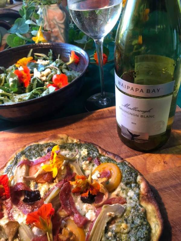 I also explore wines from Waipapa! The pesto pizza sounds like a perfect pairing for these SB’s. I love the mix of greens Sue used in the pesto too.