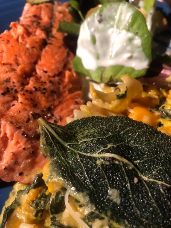 Sue: “So, so good with the squash, chard, and cream.”
