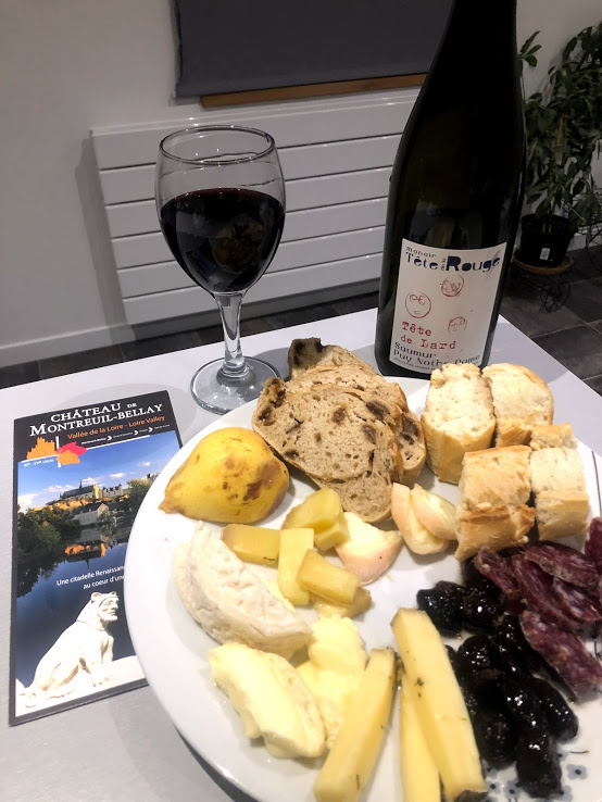 Hungry and tired and hoping to hear back from an Air B n B host, we pulled off the highway and headed toward the beautifully lit castle above the river and town in Saumur where we found ourself first in a construction zone (likely driving the wrong way in an area we shouldn’t have been!) and next in an English style pub where Sue had fish and chips. As the driver, I just wanted to get where we were going and get a glass of wine along with some of the food we’d bought at a grocery store in Reims! I’ll admit it, I was getting cranky; I had been up since 5am to get some work done, I’d been driving much of the day, and it was after 8pm.