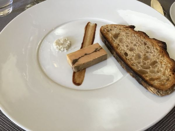 Goose liver pate with a smear of hazelnut and sea salt: creamy and delicious, incredible flavors! Details and photo by Sue Hill