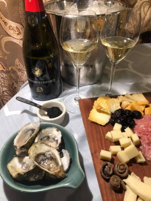 Pairing: Nice with fresh oysters on the half shell. Fine with caviar, but better with the fennel salami as it makes the salami very interesting as the wine loves the salty richness, and speaking of salt richness, it even tackles the anchovy wrapped capers and salt cured olives! Surprisingly, it likes salty aged cheeses as well include alpine cheeses, aged gouda, and parm. Franciacorta loves the yeasty qualities in the warm bread: The bread is warm and the sparkling is cold– what a wonderful combination. Great salad wine as well: the arugula makes it pop. The bitterness of the lettuce brings out the fruity characteristics in the wine. Good with the antipasto, but would also like caprese, or a grilled fruit salad, making this a fun wine throughout the year.