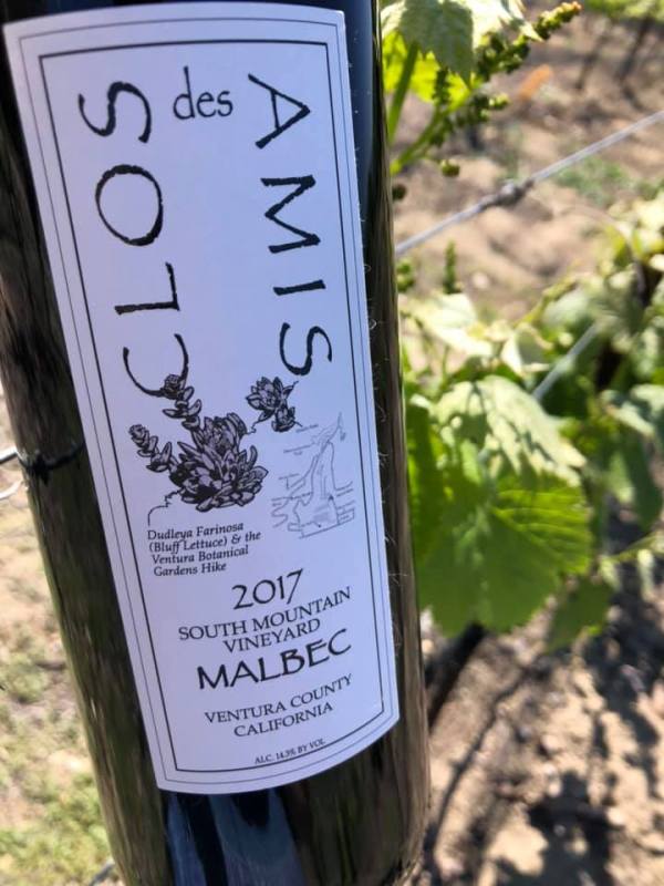 Every bottle of Clos des Amis wine features a local hike with drawings by Bruce’s partner in the winery and life, Gretel Compton; the Malbec has Duddleya Farinosa and the Ventura Botanical Trail. While I was able to get to the vineyard for this photos (and to do some pruning!), I really miss hiking a the Ventura Botanical Gardens where we are members and I usually hike above Ventura once or twice a week on Tuesdays and Wednesdays when we can bring our dog.