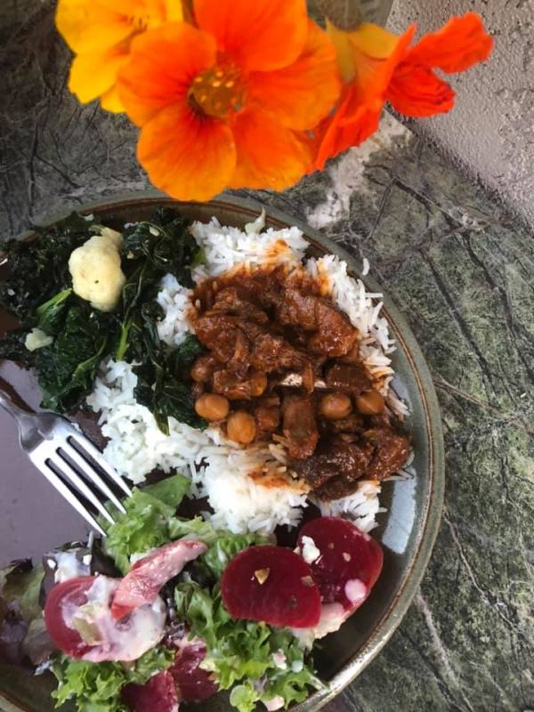 But when I found lamb on sale at the store, I suggested that we go in a different direction by trying a middle eastern lamb stew with those types of spices rather than a more traditional Italian one. Using the instant pot made for an easier meal and more time to relax and to note the quality of the wine.