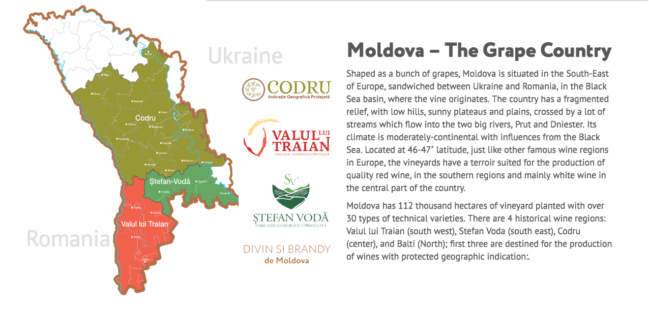 While most of the wine from Moldova is exported, very little lands in the United States; instead it heads to Russia. Once part of the Soviet Union, Moldova is surrounded on three sides by Ukraine and Romania to the west, hugged by Romania. While landlocked, its continental climate is moderated by the massive Black Sea located nearby — and which also makes it suitable for wine grapes.