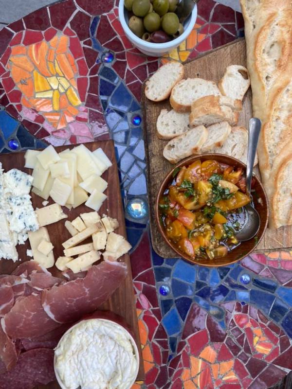 Pairing: When Sue asked where do you want to go first in pairing this wine with food, I said eggplant and bruschetta; what a great pairing. Referring to the LaTur, Gretel asked “Is there anything that doesn’t go with this cheese?” So fantastic with the tomato and basil, if you added fennel pollen it would be over the top. The roasted eggplant worked great, but Gretel liked it better with the LaTur. It works with the cured meats like rose works with smoked meats. We all loved this with the grilled eggplant bruschetta. Sue could totally imagine this wine with caponata.
