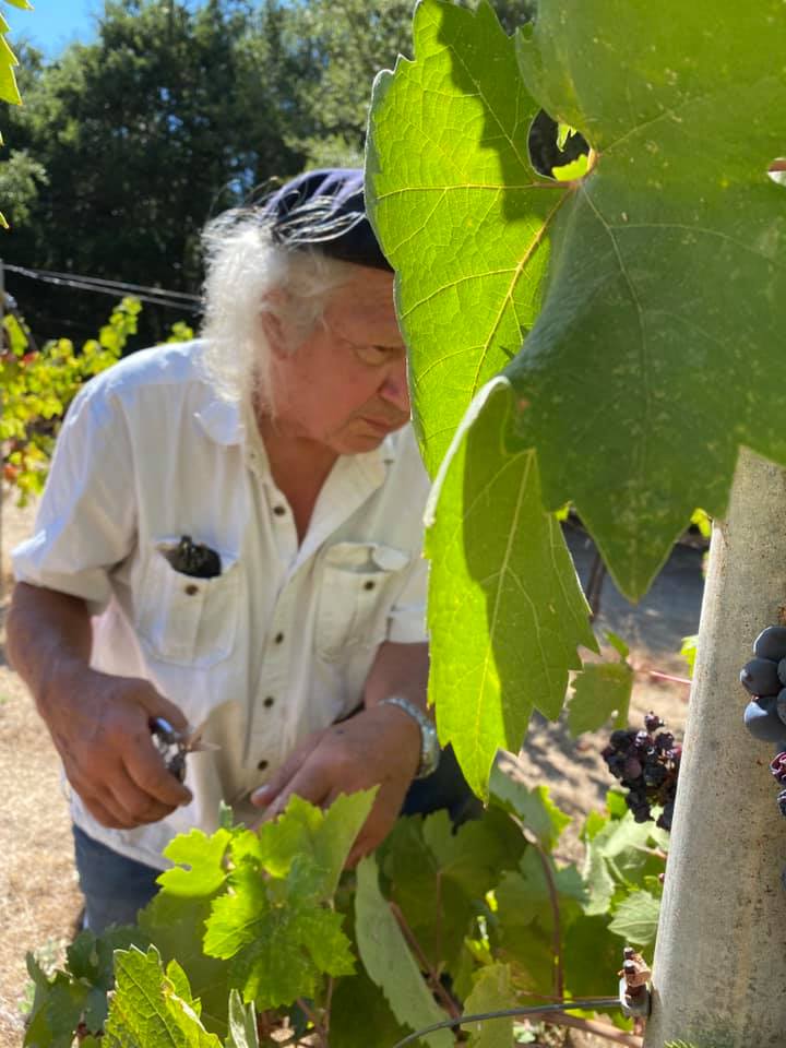 It’s 9am on a warm late August morning, and we’re knee deep in thickly trunked Zinfandel wherein large dark clusters of grapes hide bees with a few yellow jackets for good measure. The birds are out too, mostly mourning doves cooing like a daytime owl and acorn woodpeckers making a ruckus.