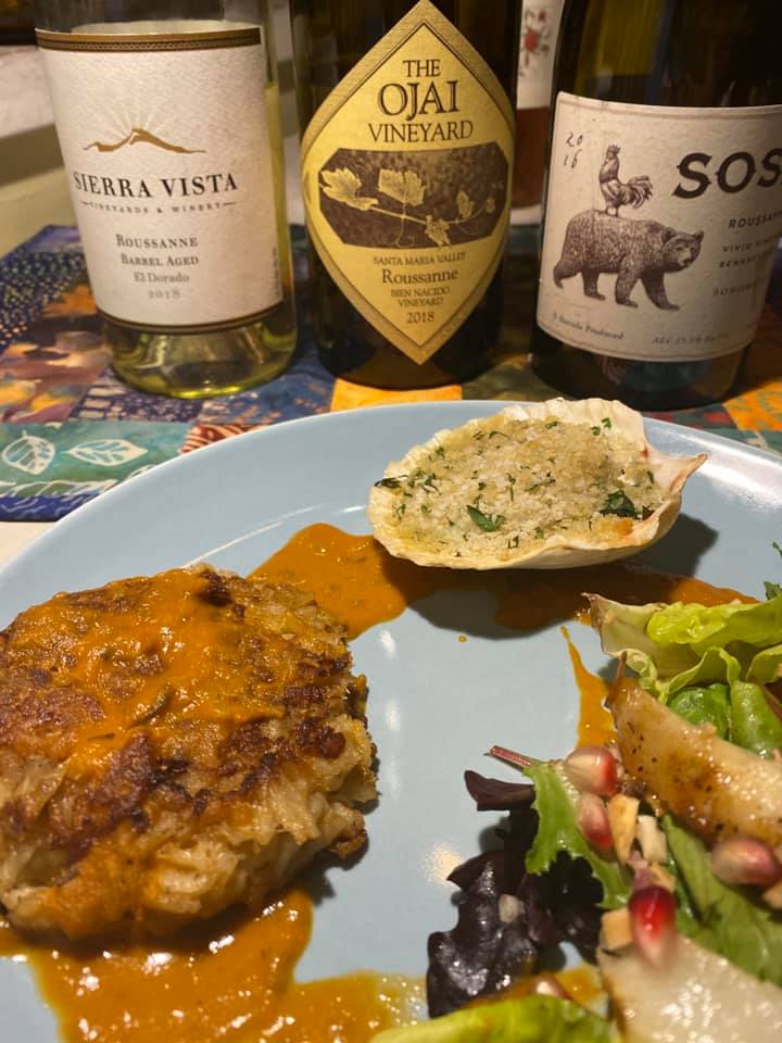 Published September 23, 2020 at 720 × 960 in Rhône Roam #4: Rare Roussanne with Scallops, Crab Risotto, Oysters, Salad #CaliforniaWineMonth