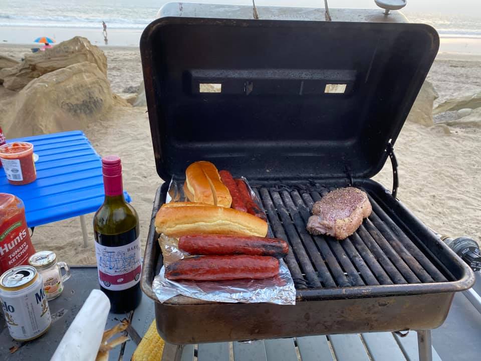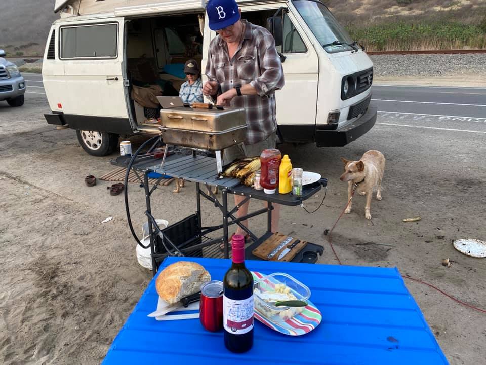 ALSO: High quality dogs and merlot– really good! I found this one with the VW label at Grocery Outlet for under $10. And the wagyu New York steak? Divine!