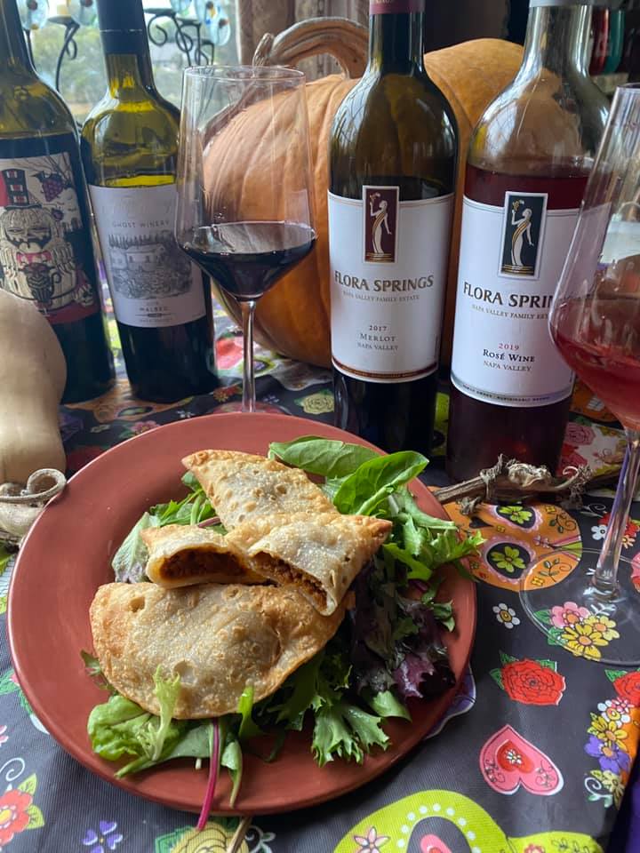 All Hallows merlot, Ghost Winery Malbec, plus Flora Springs Merlot and Rose paired well with pumpkin empanadas