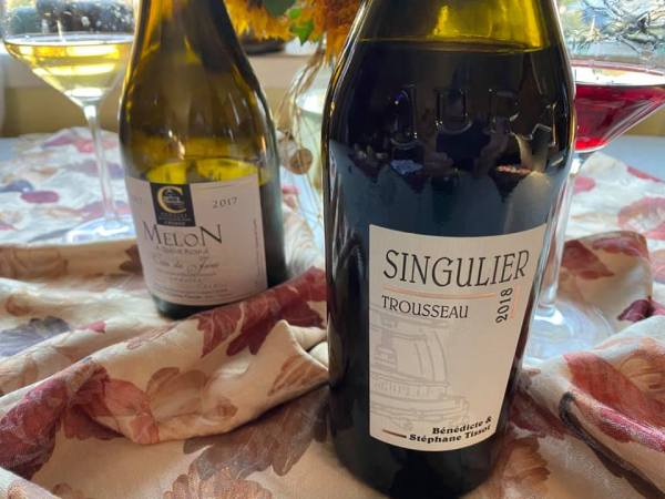 In our naiveté, we thought they’d be like other red French wines. Sue researched and developed a menu of classic rich creamy and mushroomy dishes to pair with the split of Vin Jaune and the Trousseau. With six adults, and October being MerlotMe, we figured these dishes would work well with several expensive Napa merlot wines.