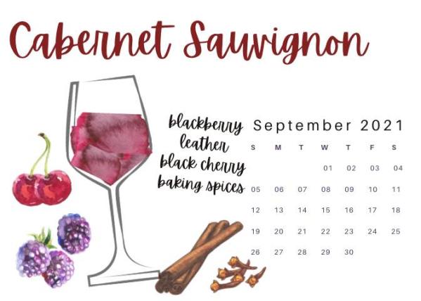Here’s another example from the calendar, this one for September which is appropriate since Thursday September 2 is Cabernet Day!