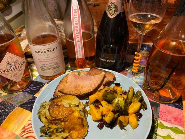 We paired these rosé wines with a classic holiday meal that we knew would be fabulous with a sparkling rosé: oysters, ham, scalloped potatoes with kale, roasted squash and Brussels sprouts with cranberries. This is a meal that can be made in advance and easily scaled up for a large group or scaled down for a more intimate dinner for the holidays, New Year’s Eve, or Valentine’s Day.