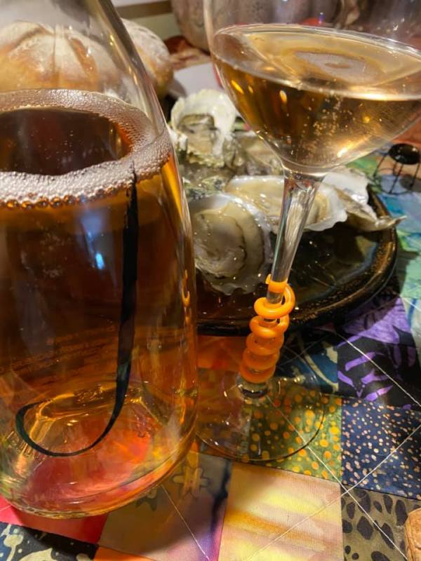Pairing: Mmmm so lovely with oysters– melon flavors come out in the oyster, and lovely strawberry fruit in the wine. Fantastic with the ham, perfect partners. The scalloped potatoes ground the wine. There is earth and sky. The Earth of the potatoes ground the sky of a wine.