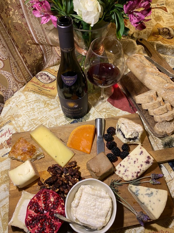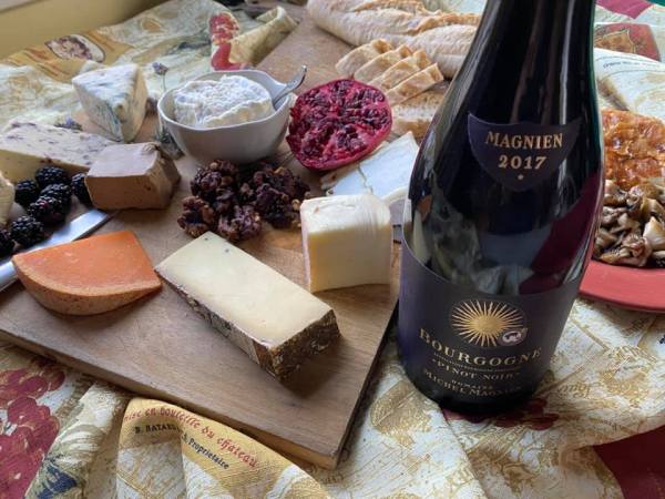 Of course, there had to be a bottle of wine to go with that cheese, please, a 2017 Michel Magnien Bourgogne Pinot Noir ($SRP 30); And a baguette too!